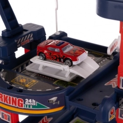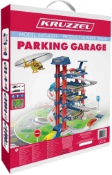 Čtyřpatrové garáže KRUZZEL zaujmou moderním designem, pevnou konstrukcí a promyšlenými detaily pro realistickou hru. Každé patro má zábradlí proti vypadnutí autíček, na střeše je heliport a po celé trase nechybí dopravní značení. Široké, ideálně tvarované rampy umožňují plynulý sjezd od nejvyšší úrovně až dolů.