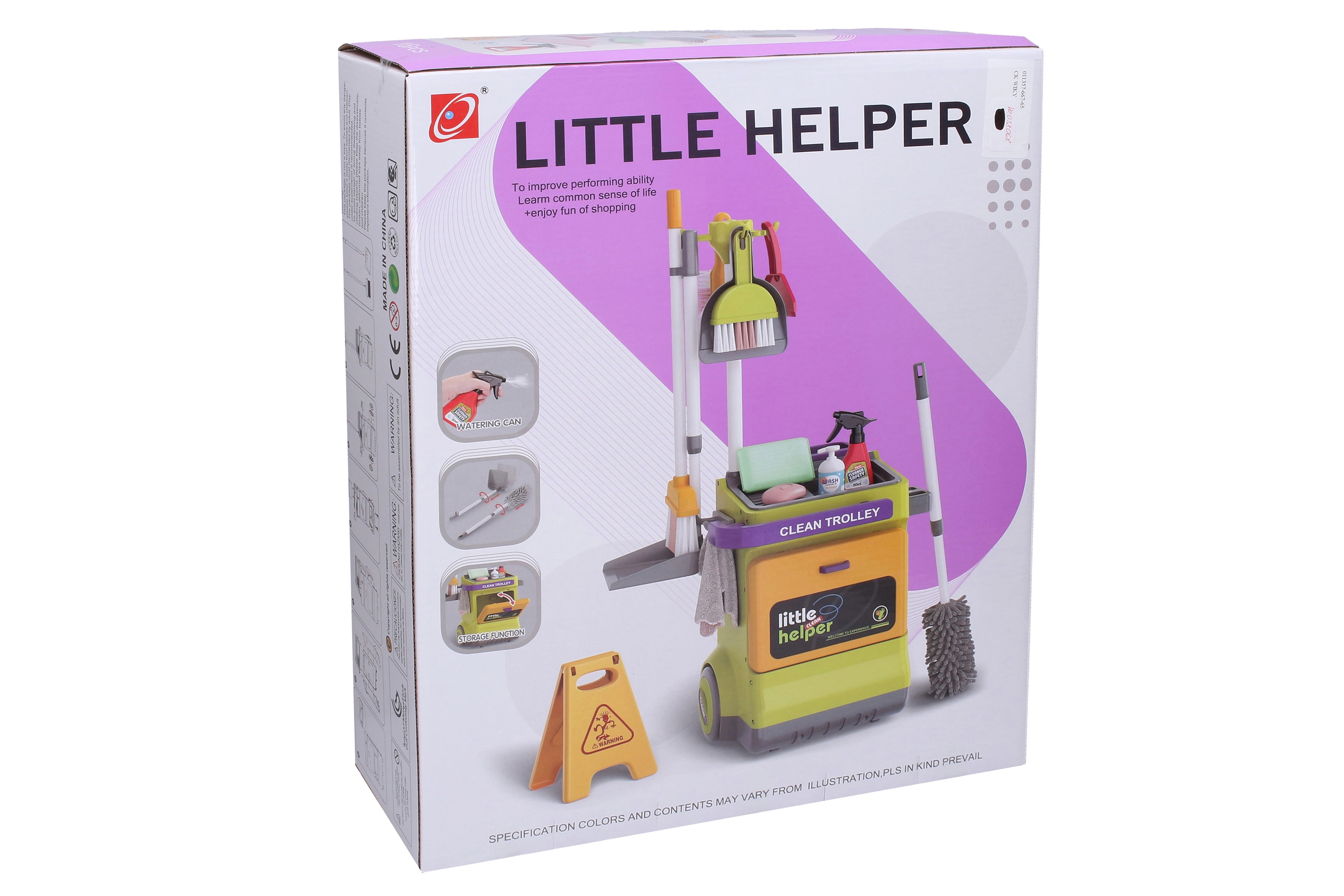 Kompletní úklidový set s vozíkem pro malé pomocníky do domácnosti obsahuje vše, co je potřeba pro hru na uklízení. Díky bohaté výbavě a realistickým doplňkům si děti užijí hodiny zábavy a zároveň si rozvíjejí motoriku a zodpovědnost. Součástí jsou smetáky, smetáček, lopatky, prachovka, stěrka na okna i „čistící prostředky“ pro ještě autentičtější zážitek.