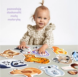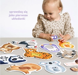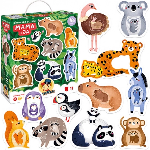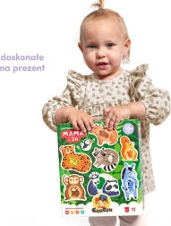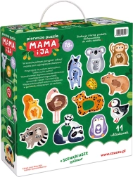 První puzzle Máma a já je vynikající vzdělávací sada pro nejmenší objevitele a skvělý nápad na první skládačky. Obsahuje 11 velkých dvoudílných puzzlí s otvorem. Hra spočívá v přizpůsobení různě tvarovaných dílů do otvorů.