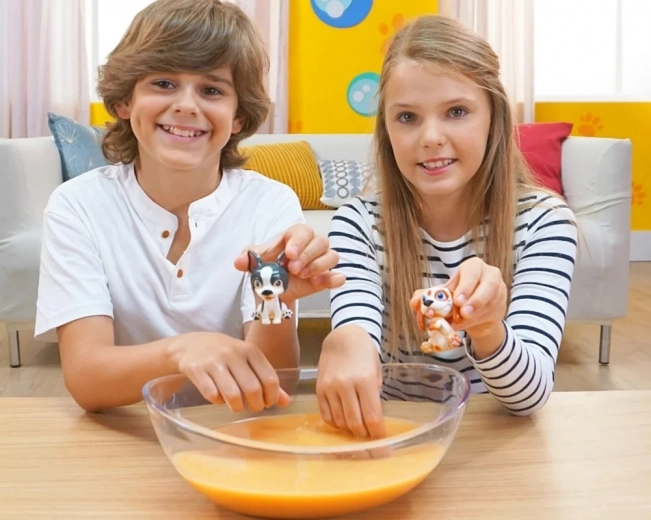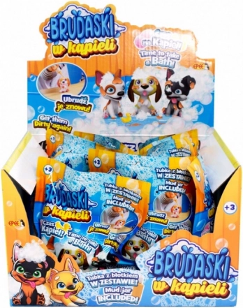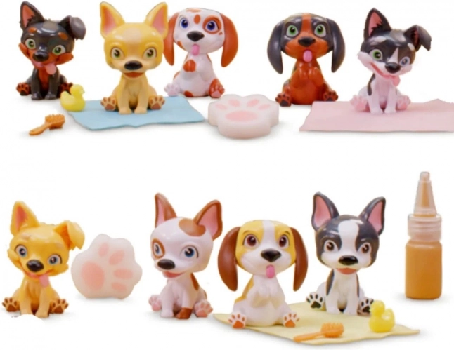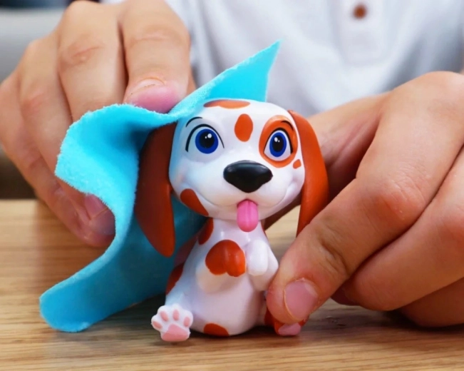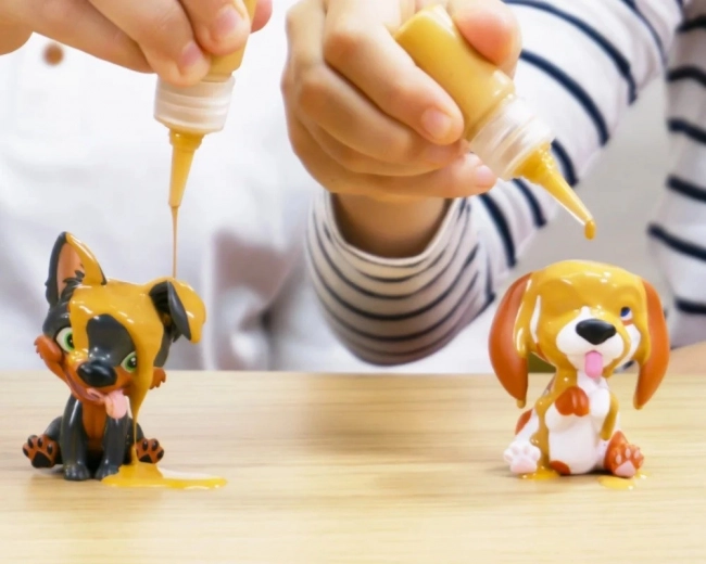 Pejsky můžete „ušpinit“ speciálním blátíčkem a pak je ponořením do vody snadno umýt – děti milují viditelný efekt proměny.