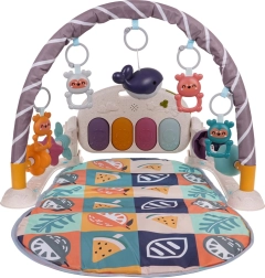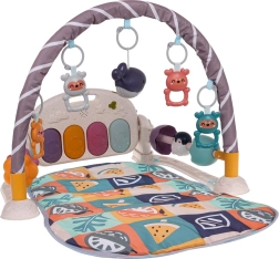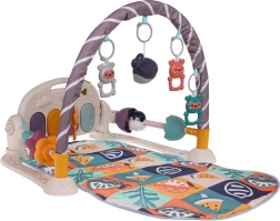 Tato interaktivní hrací deka kombinuje pohodlnou podložku, oblouk se závěsnými hračkami a světelné piano, aby podpořila rozvoj dítěte ve všech fázích – od ležení na zádech, přes nácvik sedu až po první samostatné hraní na klávesy. Konstrukce z bezpečného bioplastu je odolná a šetrná k přírodě, zatímco měkký, antiskluzový a snadno omyvatelný materiál zajišťuje bezpečí a pohodlí.