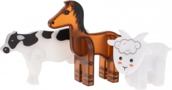Tři realisticky stylizované figurky pomáhají dětem poznávat základní zvířata na farmě a rozšiřují slovní zásobu.