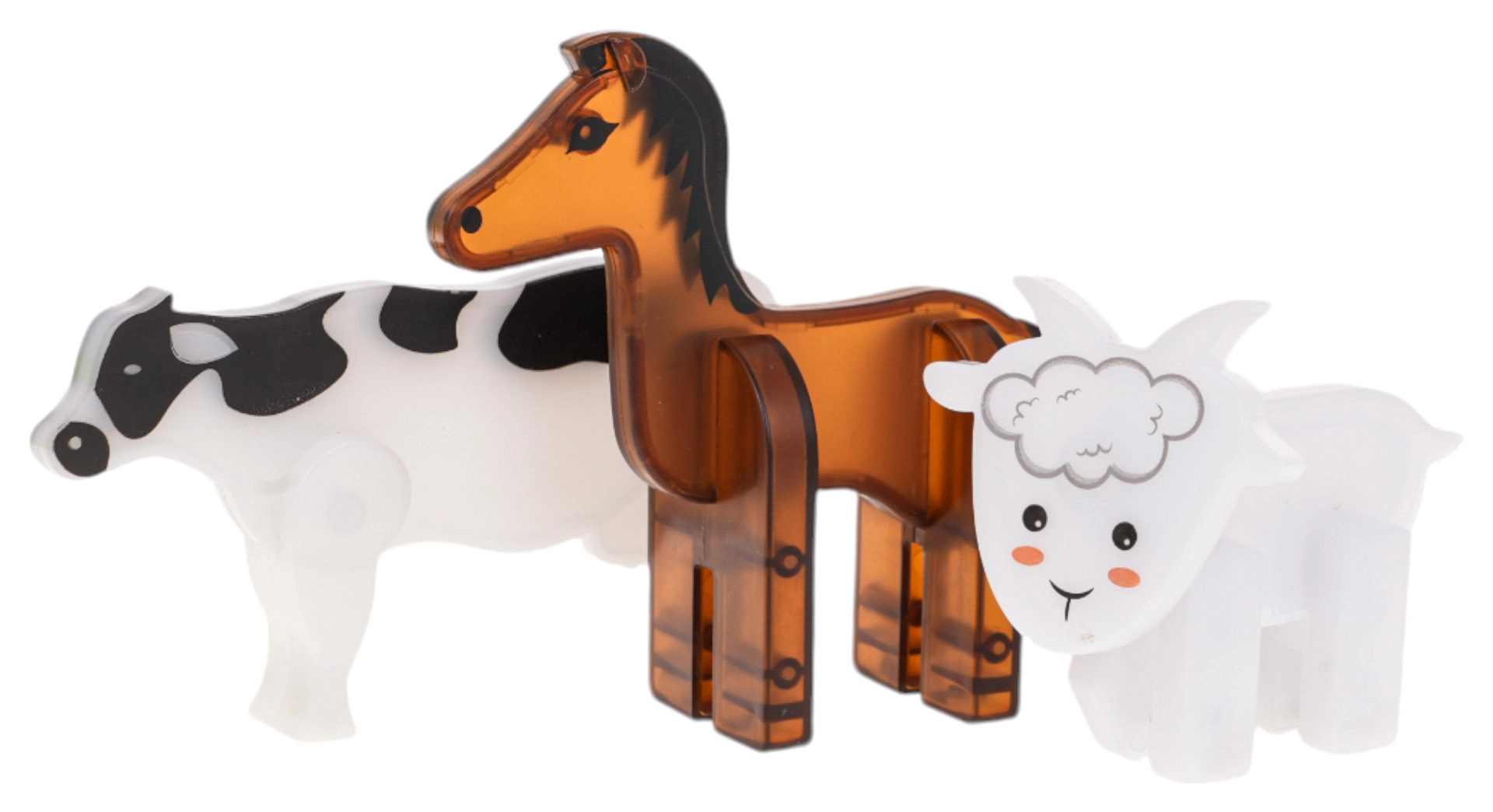 Postavte si vlastní farmu a hrajte si s figurkami kravičky, koníka a ovečky. Ideální pro rozvoj fantazie a herních příběhů.