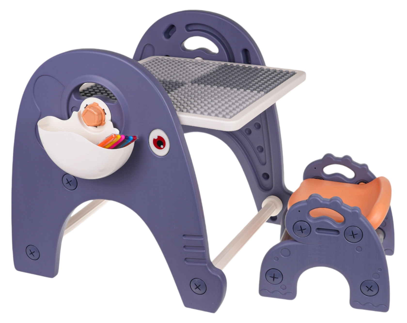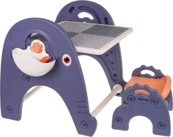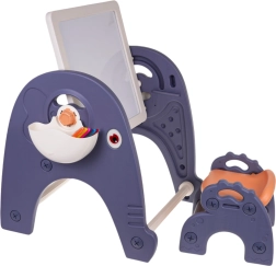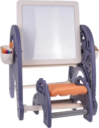 Univerzální set pro malé tvůrce: tabule, stolek, podložka na stavebnici a židlička 4 v 1 pro děti od 3 let. Pevná konstrukce z kvalitního plastu, bez ostrých hran, s možností naklápění a otáčení tabule. Z jedné strany bílá tabule na kreslení, z druhé strany texturovaná podložka pro kostičky. V balení je 6 barevných fixů, houbička a boční košíky na pomůcky – ideální pro kreslení, učení i hraní.