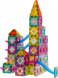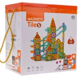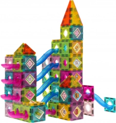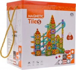 Tato rozsáhlá stavebnice kombinuje magnetické dlaždice a prvky pro kuličkové dráhy, takže děti od 3 let mohou stavět věže, hrady i originální tratě pro barevné kuličky. Díly jsou vyrobeny z kvalitního, hladkého plastu v živých barvách, magnetické hrany se snadno a pevně spojí a konstrukce tak dobře drží i u vyšších staveb.
