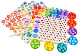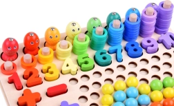 Objevte zábavný způsob, jak děti naučit čísla, počítání a barvy – s touto dřevěnou vzdělávací sadou plnou aktivit. Díky magnetickému rybaření, třídění barevných kuliček, vkládání tvarů a počítání do 10 rozvíjí jemnou motoriku, logické myšlení a koordinační schopnosti hravou formou.