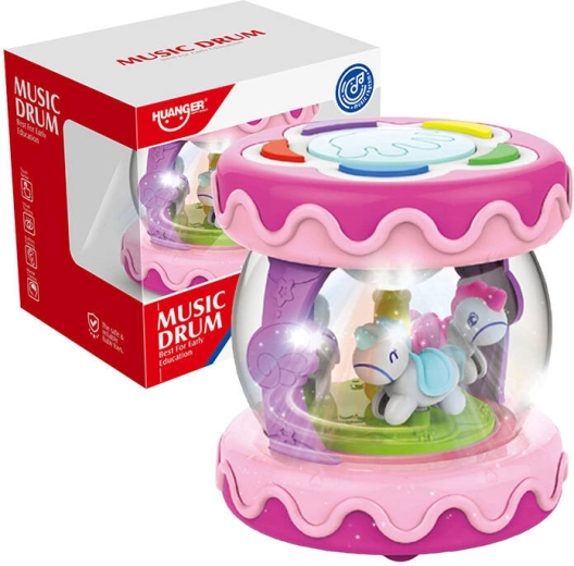 Hudební hračka bubínek Huanger je multifunkční 3-v-1 hračka, která kombinuje buben, hudební skříňku a projektor. Poskytuje dítěti rozmanité herní aktivity pro rozvoj smyslů a učení.