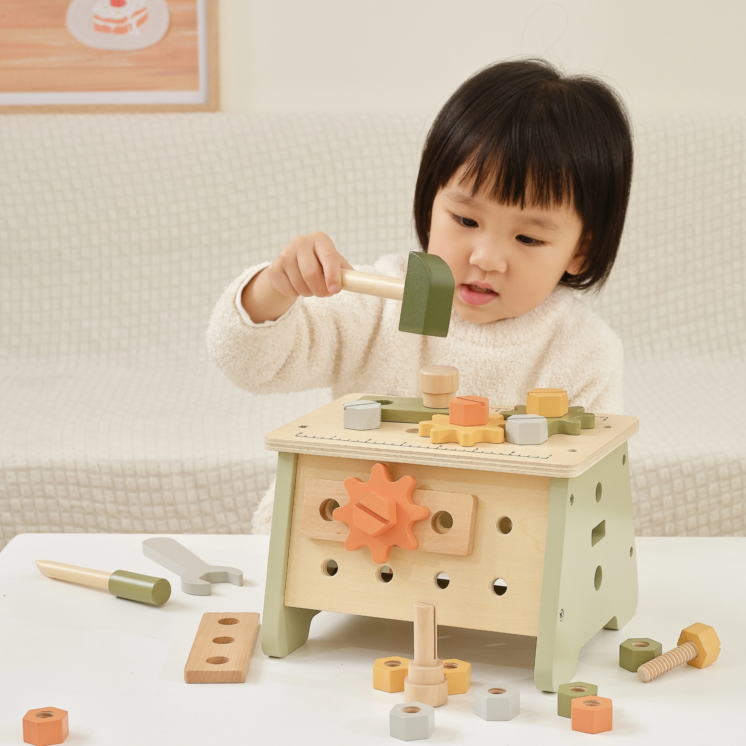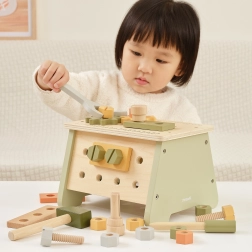 Objevte chytrou hračku, která spojuje mini dílnu a bedýnku na nářadí 2v1. Děti se seznámí s nástroji a procvičí si šroubování, údery kladívkem a přesné spojování. Po otočení stolku vznikne kompaktní box pro snadné ukládání a přenášení všech dílů.