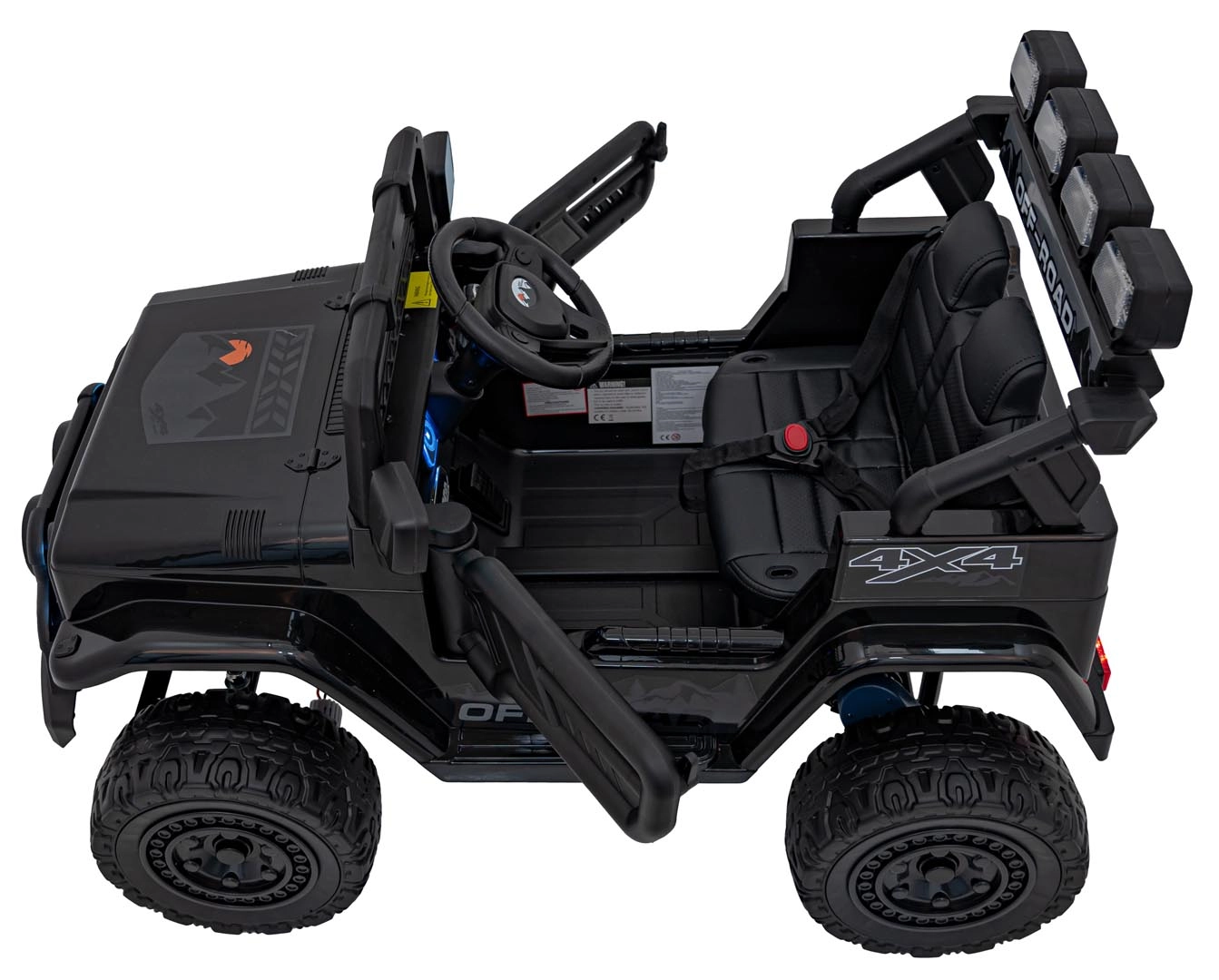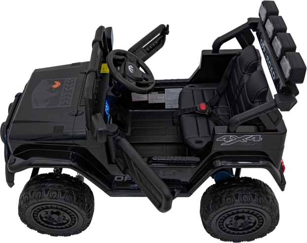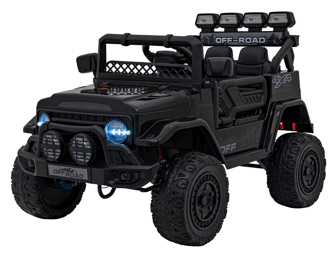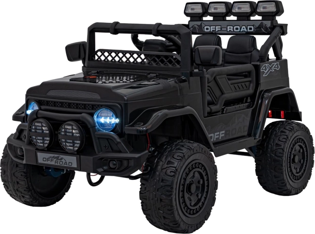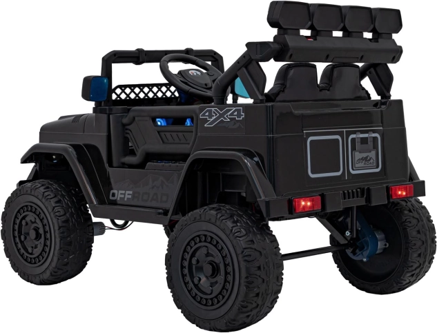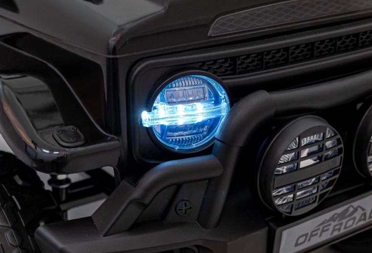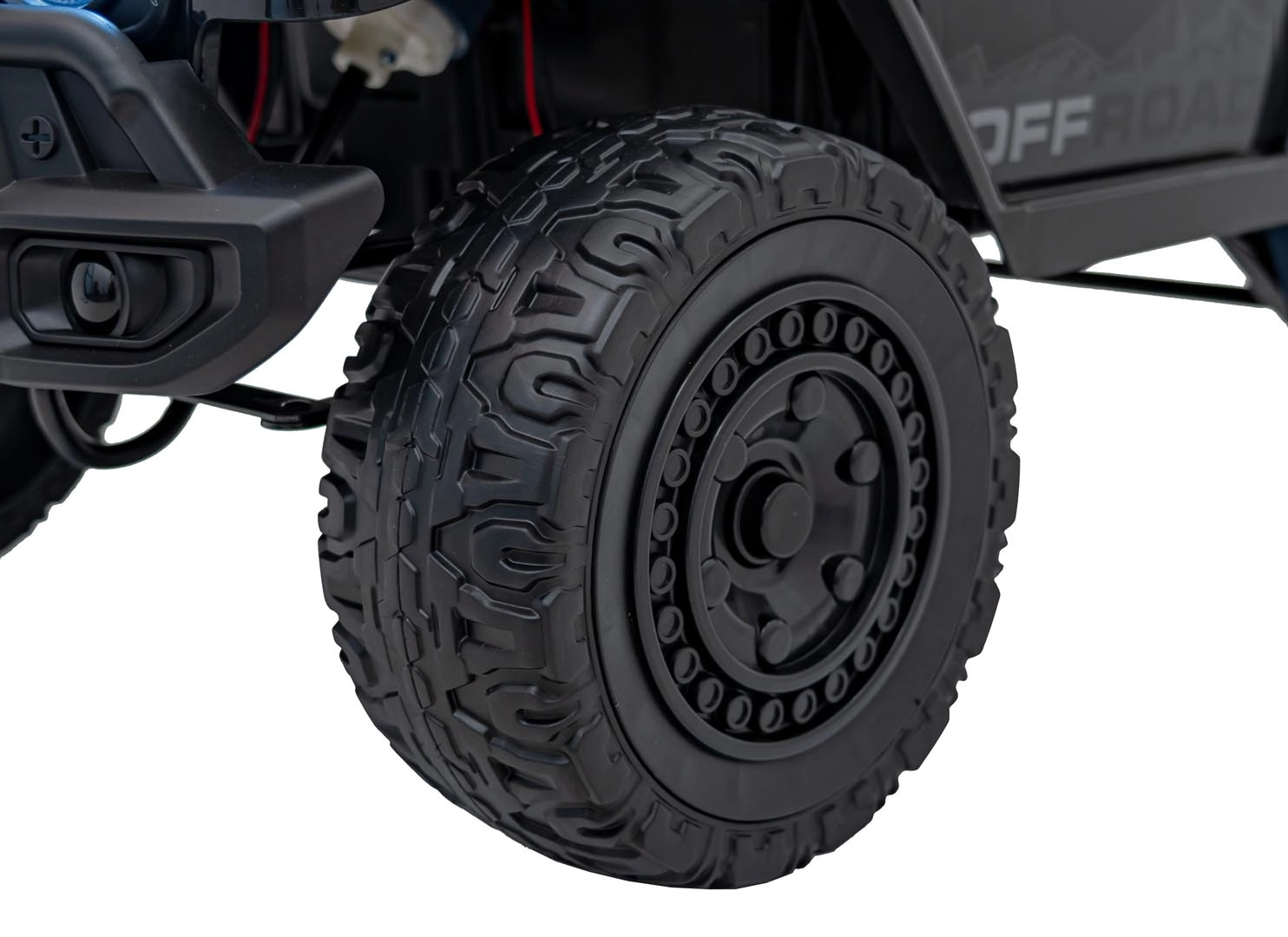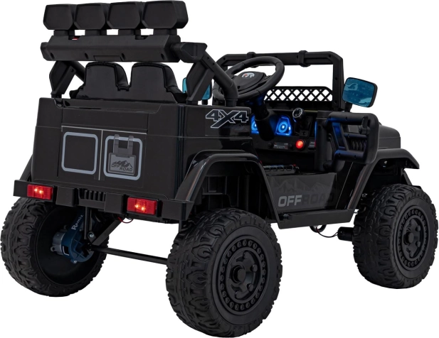 Off-Road Climber je ideální volbou pro jízdu po zahradě i zpevněných cestách. Velká pěnová kola EVA s výškou profilu a zadními tlumiči zajišťují pohodlnou a stabilní jízdu, zatímco LED světla a horní lampy přidávají na atraktivitě i bezpečnosti při horších světelných podmínkách.