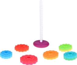 Tato barevná spirálová věž zaujme děti pestrými barvami a plynulým sklouzáváním kroužků po spirálové tyči. Při hře si děti přirozeně rozvíjejí úchop, přesnost pohybů a učí se rozlišovat velikosti. Díky odolnému plastu a stabilní základně je hra bezpečná a intuitivní.