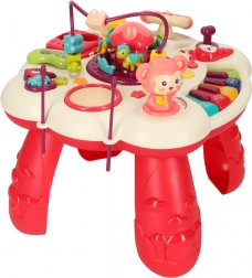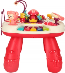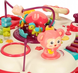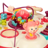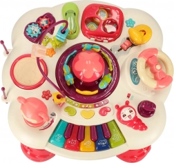 Objevte hravé učení s tímto interaktivním stolkem pro děti v jemné růžové barvě. Nabízí piánko se zvuky a příběhy v angličtině, bubínky s paličkami, kolotoč, volant s klaksonem i sorter tvarů. Podporuje jemnou motoriku, koordinaci oko–ruka a smyslový rozvoj a zabaví na dlouhé hodiny.