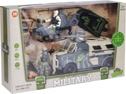 - Kompletní výbava: vozidlo, vrtulník, člun, věž, zbraně, pes a 2 figurky vojáků
