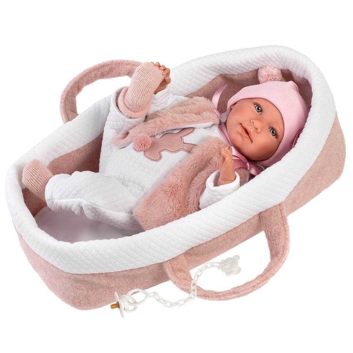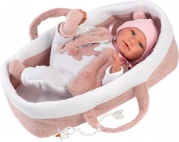 Součástí je měkký košík/nosítko ladící s oblečky, ideální pro ukládání panenky a hry na cestách.
