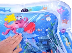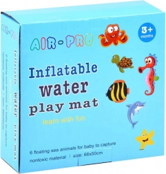 Tato vodní hrací podložka je vyrobena z kvalitního plastového materiálu. Po nafouknutí okraje a naplnění středu vodou se uvnitř volně pohybují plovoucí prvky s motivem oceánu, které přitahují pozornost dítěte a povzbuzují jej k objevování. Podložka je ideální pro položení na bříško, posiluje krk, ramena a zádové svaly a přirozeně podporuje správný motorický vývoj.