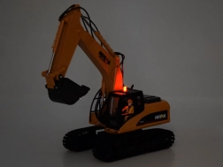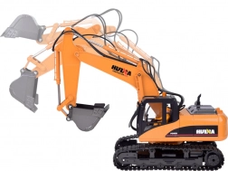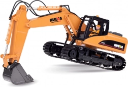 Realistický RC bagr v měřítku 1:14 HUINA pro malé stavitele. Nabízí otoč kabiny 585°, plný rozsah pohybů ramene a lžíce, 2,4 GHz ovládání, světelné a zvukové efekty s možností vypnutí a měkké pásy pro hladkou jízdu. Napájí jej akumulátor 7,4 V 500 mAh s nabíjením přes USB.