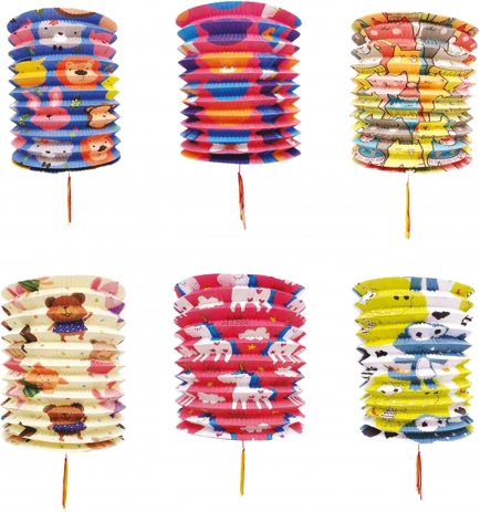 Dekorativní lampion válec o výšce 16 cm, v různých provedeních, ideální pro oslavy a dekorace.