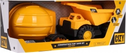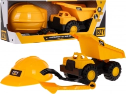 Součástí sady je ochranná přilba a nástroje jako lopatka a hrábě, které zaručují kompletní stavební zážitek.