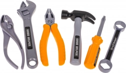 Šroubovák, kladívko, klíče, kleště, ochranné brýle a maska, dřevěné lišty i spojovací materiál. Vše pro kreativní stavění a trénink jemné motoriky.