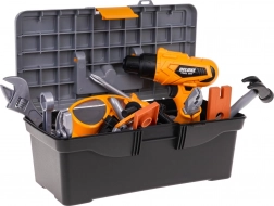 Tato dětská sada nářadí nabídne vše, co malý kutil potřebuje: velkou skříňku na nářadí, bezpečnostní brýle a masku, kladívko, šroubovák, kleště, klíče i stavební díly se šrouby a hmoždinkami. Díky kvalitnímu plastu je set lehký, odolný a ideální pro hru na profíky.