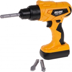 Dětská vrtačka na 2× AA (1,5 V, nejsou v balení) skutečně utahuje a povoluje šrouby, má vyměnitelné bity a vyjímatelný „akumulátor“. Zvukové efekty umocní zážitek ze hry.