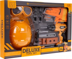 Bohatě vybavená dětská sada nářadí pro malé kutily od 3 let obsahuje helmu, brýle, rukavice, kladivo, šroubovák, šrouby a destičky i interaktivní aku vrtačku se zvuky na 2× AA (nejsou součástí). 20 dílů v bezpečném plastovém provedení podporuje představivost a jemnou motoriku.