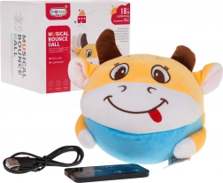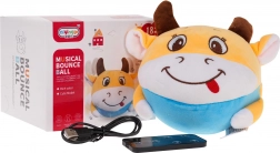 Veselá skákající kravička je hebká interaktivní plyšová hračka pro nejmenší. Uvnitř má vyjímatelný kulatý funkční modul, díky kterému po zapnutí skáče, pohybuje se, hraje melodie a zároveň svítí zeleným podsvícením. Ovládání usnadňuje přiložený dálkový ovladač, napájení zajišťuje dobíjecí akumulátor s nabíjením přes USB.