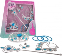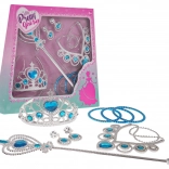 Tato bohatě vybavená sada promění každé hraní v kouzelný příběh. Lesklé plastové „diamanty“ a imitace drahých kamenů ve stříbrno‑modrém provedení dodají každému princeznovskému outfitu šmrnc. Doplňky jsou navrženy s důrazem na detailní zpracování a pohodlné nošení.