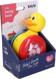 Barevná kachna na kolečkách zaujme pozornost dětí díky houpavému pohybu a chrastícím zvukům malých kuliček.