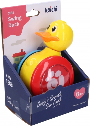 Houpací chrastítko ve tvaru kachny s kuličkami zajistí zábavu a rozvoj pro děti od 6 měsíců.