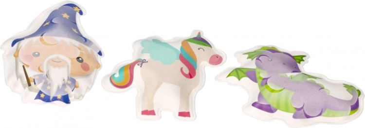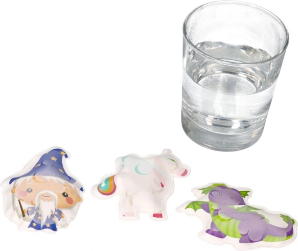 Pěnové samolepky s motivy mystických bytostí po namočení mění barvu a snadno drží na mokrých dlaždicích či vaně. Podporují kreativní hru a rozvoj jemné motoriky.