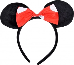 Měkká čelenka s plyšovými oušky a červenou mašlí doplní kostým a drží pevně na hlavě.