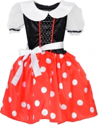 Okouzlující kostým malé myšky přináší klasickou kombinaci červené se světlými puntíky a elegantního černého živůtku. Lesklé detaily na horním dílu a pufované rukávky dodávají šatům slavnostní nádech, zatímco podšitá sukně drží pěkný tvar pro dokonalý "wow" efekt na každém karnevalu.