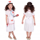 Bílé šaty s červenými lemy, srdíčka s křížem a zástěrka vytvářejí klasický vzhled zdravotní sestřičky, který děti milují.