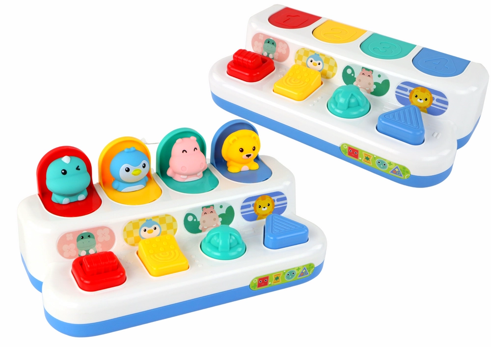 Objevte zábavnou a vzdělávací hračku, která rozvíjí jemnou motoriku, logické myšlení a koordinaci pohybů dětí. Barevné prvky s různými mechanismy a vyskakující zvířátka motivují k objevování, učení barev a pochopení příčina–následek.