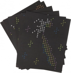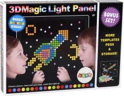 Světelný panel s mřížkou otvorů umožňuje snadno zasouvat průsvitné kolíčky a vytvářet zářivé motivy. Díky přiloženým šablonám se můžete nechat vést hotovými předlohami, nebo tvořit úplně vlastní designy. Tabule je napájena bateriemi 3× AA (nejsou součástí balení).