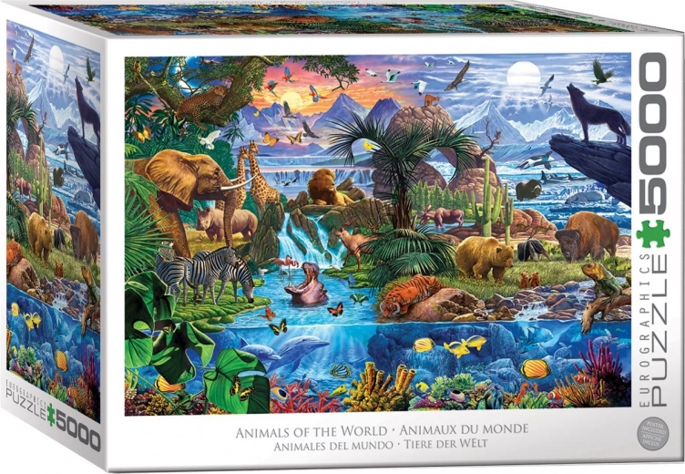 Objevte svět divoké přírody s extra velkým puzzle, které nabízí až 5000 dílků. Ideální pro trpělivé skládače, milovníky zvířat i rodinné odpoledne. Po složení vznikne impozantní obraz s rozměry cca 152,4 × 101,6 cm. Puzzle je pro pohodlnější stavbu rozděleno do čtyř samostatných sáčků. Užijte si kvalitní tisk, detailní ilustrace a dlouhé hodiny relaxace a zábavy. 5000 dílků, motiv Zvířata světa, velký formát, balení do 4 sáčků.