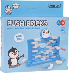 Zábavná zručnostní hra pro děti od 3 let i dospělé. Postavte zeď z barevných cihliček a pomocí malé lžíce je opatrně vytláčejte tak, aby figurka pingvina na vrchu nespadla. Hra rozvíjí koncentraci, logické myšlení a koordinaci ruka–oko, přitom skvěle zabaví celou rodinu a pomůže odpočinout si od obrazovek.