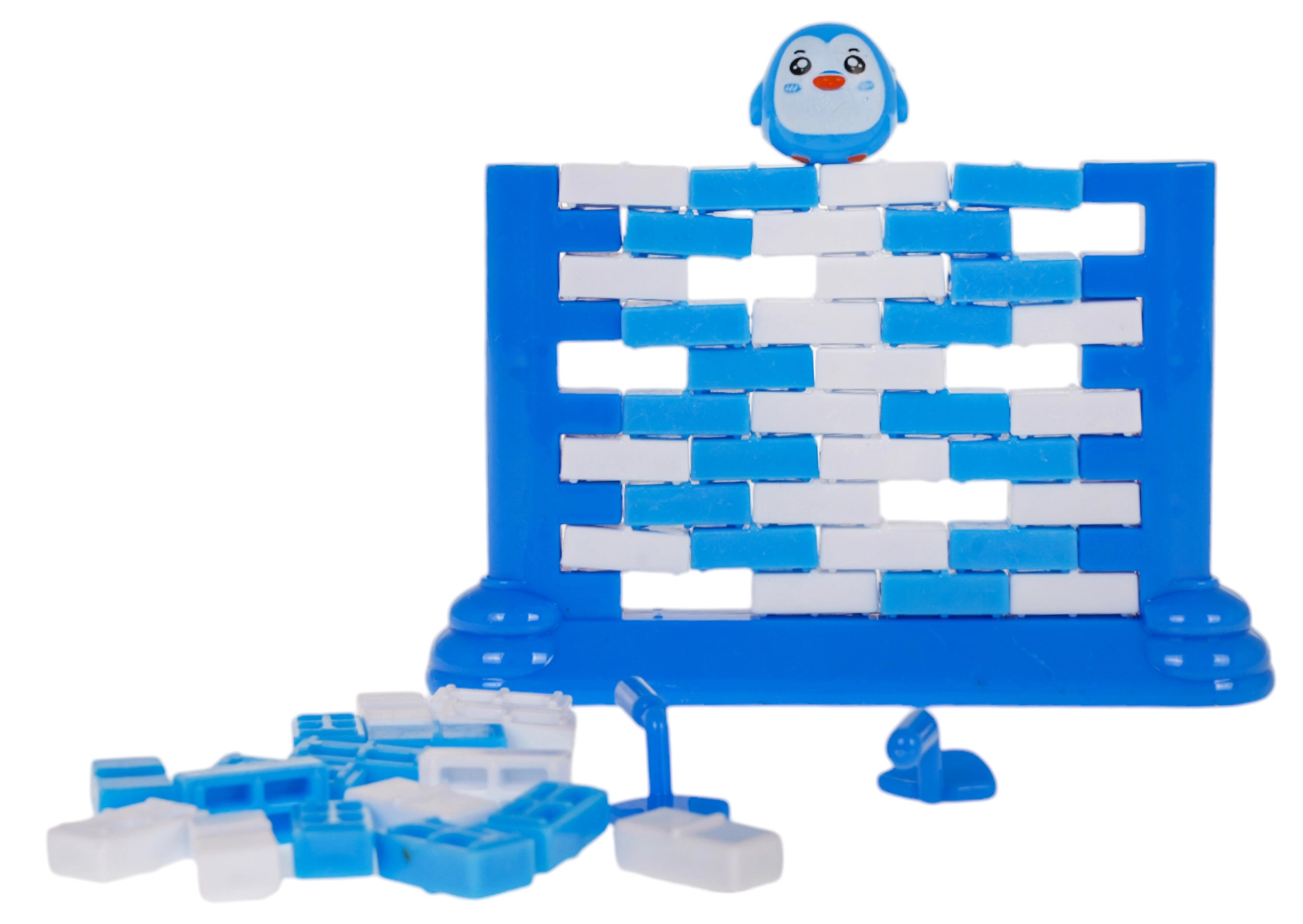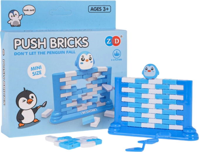 Tato rodinná hra prověří vaši trpělivost i šikovnost. Nejprve postavíte zeď na speciálním podstavci a na její vršek umístíte figurku pingvina. Hráči se střídají ve vytlačování jednotlivých cihliček pomocí malé "kelně" – ten, komu pingvin spadne, prohrává. Jednoduchá pravidla, napětí v každém tahu a spousta smíchu.
