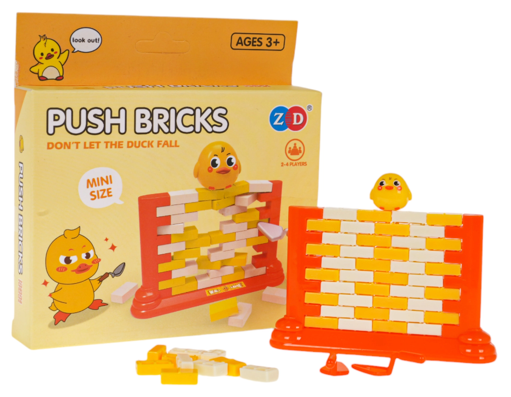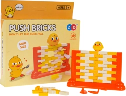 Zábavná dovednostní hra pro děti od 3 let, ve které stavíte zeď z kostiček a opatrně je vytlačujete speciální lžičkou tak, aby nespadla figurka kachničky. Podporuje koncentraci, logické myšlení a koordinační schopnosti, zároveň je to skvělá rodinná zábava i relax.