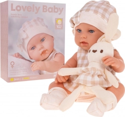 Tento elegantní set přináší vše, co děti potřebují pro péči o své miminko: detailně provedenou panenku v laděném oblečku, měkoučkého plyšového králíčka a textilní košík s uchy na přenášení. Kvalitní materiály a bezpečné zpracování zaručují dlouhou a radostnou hru.