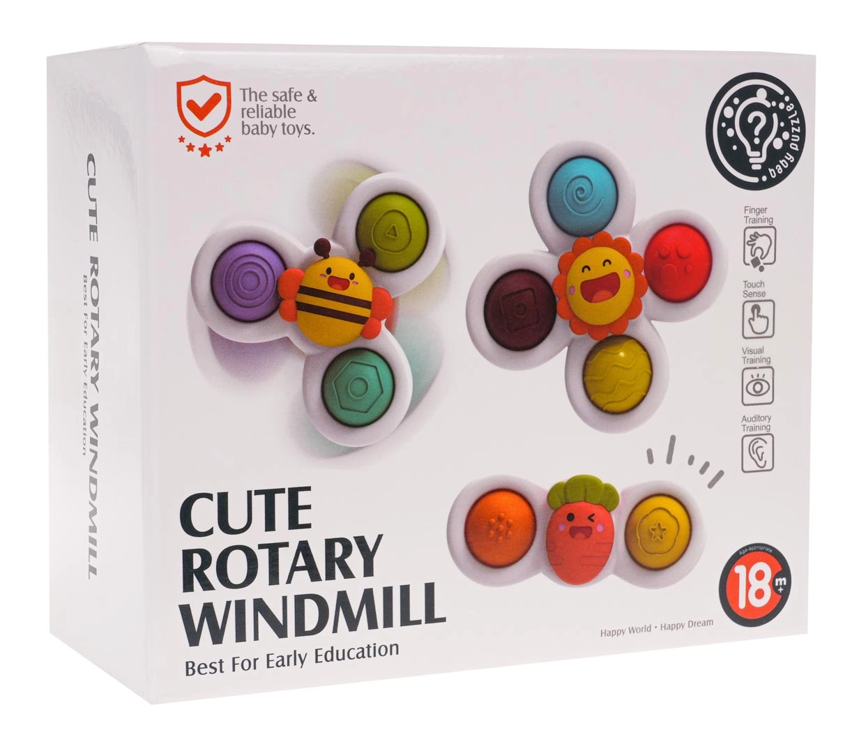 Tři roztomilé motivy – sluníčko, včelka a mrkev – propojují hravý design s praktickými funkcemi pro rozvoj dítěte. Silná přísavka na zadní straně umožní hračku připevnit na různé hladké povrchy, zatímco odolná ložiska zajišťují dlouhotrvající a hladký spin. Díky voděodolnému provedení se spinnery skvěle hodí i do koupele.