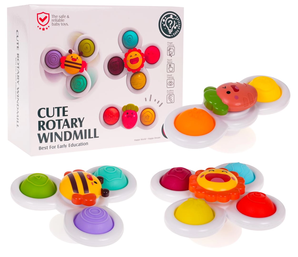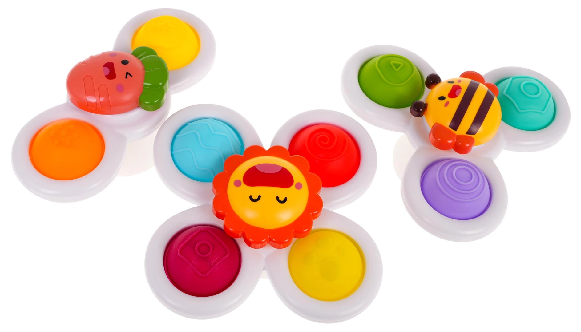 Objevte zábavu a rozvoj jemné motoriky s barevnou sadou tří senzorických spinnerů se silnou přísavkou. Hračky se plynule otáčejí, jsou voděodolné, vhodné od 18 měsíců a mají gumová tlačítka pro mačkání, která stimulují smysly a uklidňují. Připevněte je na sklo, vanu nebo stůl a dopřejte dětem spoustu podnětné zábavy doma i na cestách.