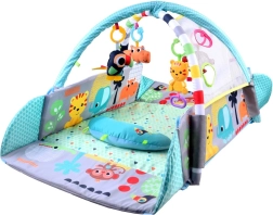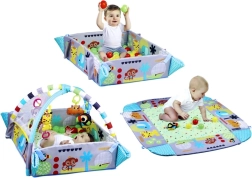 Tato variabilní hrací podložka 5 v 1 je skvělým řešením pro každodenní hraní i odpočinek. Měkká, polstrovaná plocha a odnímatelné oblouky s visícími hračkami lákají ke zkoumání, natahování a tréninku koordinace oko–ruka. Postupně ji snadno přeměníte na ohrádku nebo míčkový bazének, aby dítě mělo stále podnětné a bezpečné prostředí.