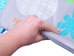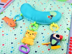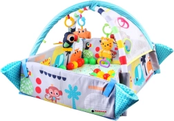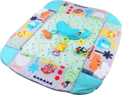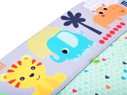 Podložka je vyrobena z materiálů, které se snadno čistí a dobře snášejí každodenní používání. Vzory se zvířátky, kontrastní barvy a různé textury rozvíjejí zrak, hmat i sluch. Praktické provedení a stabilní konstrukce zajišťují bezpečí při hře.