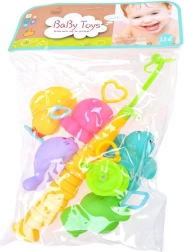 Objevte okouzlující svět vodních her s touto sadou gumových zvířátek a rybářským prutem, která přináší spoustu zábavy do každodenního koupání. Každé z pěti zvířátek je navrženo tak, aby bylo snadno chytatelné prutem díky plastovému háčku, což dětem umožňuje procvičovat koordinaci pohybů a jemnou motoriku.