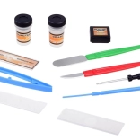 - Připravené sklíčko, 2× sklíčko na preparát, 2× kelímek se zátkou, krabička na vzorky, pinzeta, špachtle, skalpel, jehla, šroubovák, návod