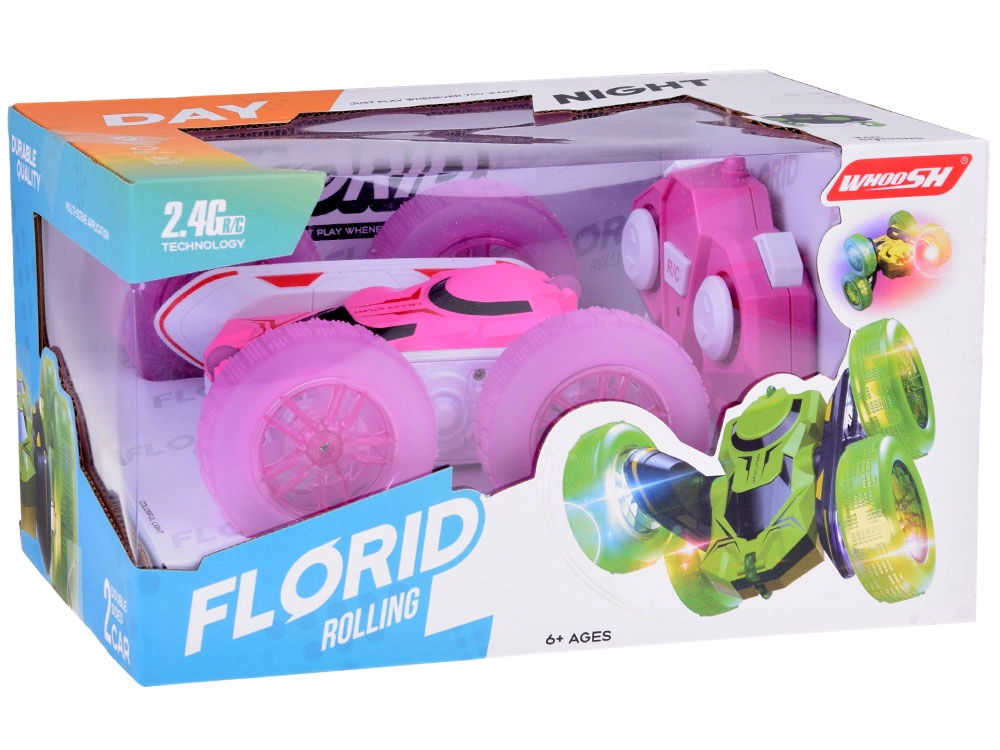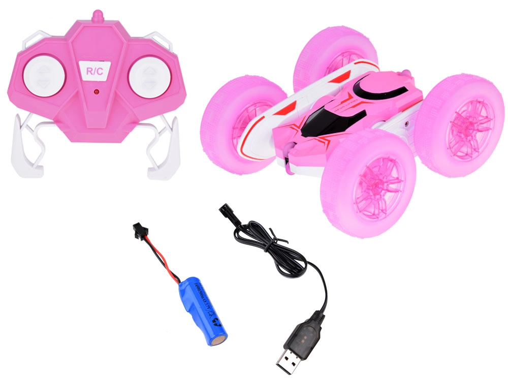 RC kaskadérské auto 360° se svítícími koly – růžové FLORID Rolling