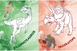 Tato omalovánka potěší všechny malé paleontology. Děti si mohou vybarvovat oblíbené dinosaury podle barevných předloh a zároveň si vyzkoušet tvoření s nažehlovacími obrázky, které snadno přenesou na textil pomocí žehličky.