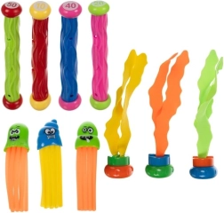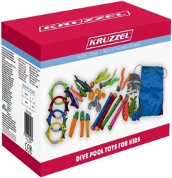 Tato komplexní sada pro potápění a hry ve vodě je navržena pro zábavu i rozvoj plaveckých dovedností. Díky jasným barvám a různým tvarům děti snadno najdou předměty pod hladinou, trénují orientaci, potápění a koordinaci pohybů. Bodové označení na vybraných dílech podporuje zdravou soutěživost a vytváří spoustu herních scénářů.