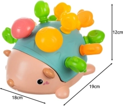 Povrch ježka kombinuje různé textury (hladké, vypouklé, s otvory), které stimulují hmat a podporují poznávací dovednosti. Kvalitní ABS je odolný a bezpečný, neobsahuje škodlivé látky a snadno se čistí.